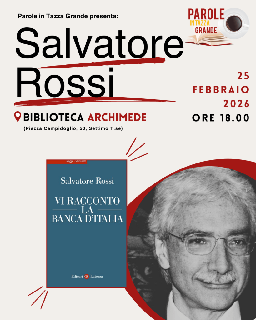 Parole in Tazza Grande presenta Salvatore Rossi, ex Direttore generale Banca d’Italia, presenta “Vi racconto la Banca d’Italia“, Editori Laterza.
